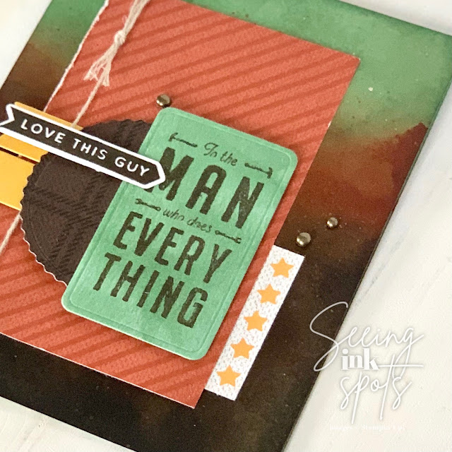 We have a fantastic challenge this week at #TGIF369. For this challenge we are celebrating the release of the 2022-2023 Annual Stampin' Up! Catalog. The idea is to use one, two, or however many inspirational cues from the new catalog cover to motivate your project. I picked the card; specifically the background of the card. AND, I chose to use the He's the Man Suite since it was the first new collection for me from this new catalog.
